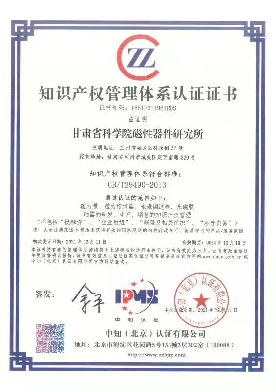 知識產權管理認證證書