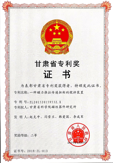甘肅省專利獎證書